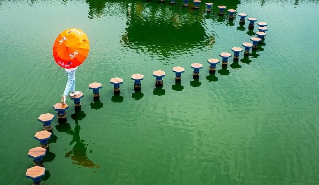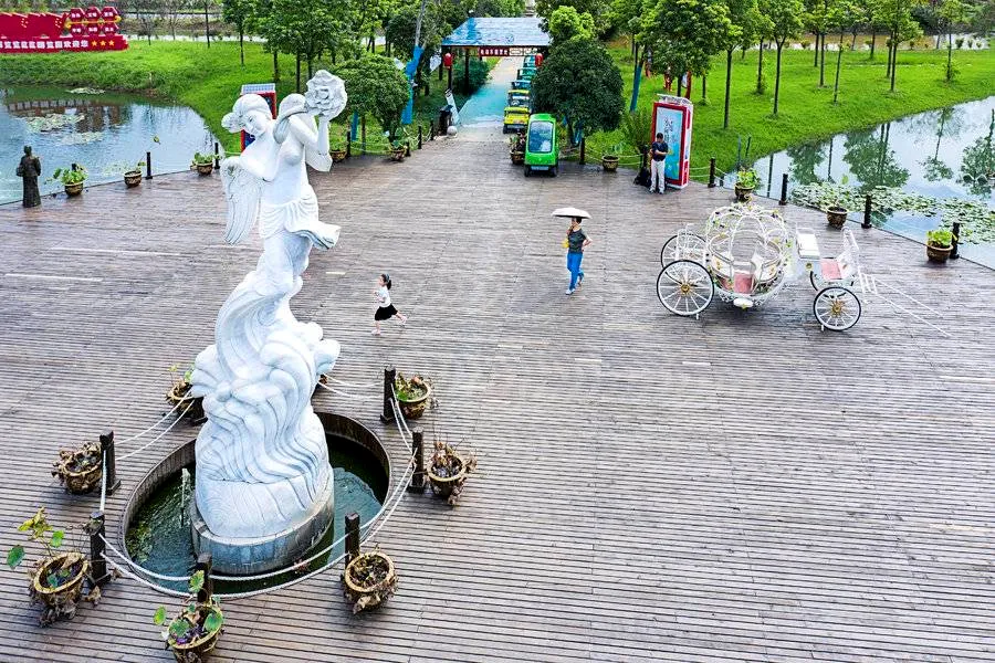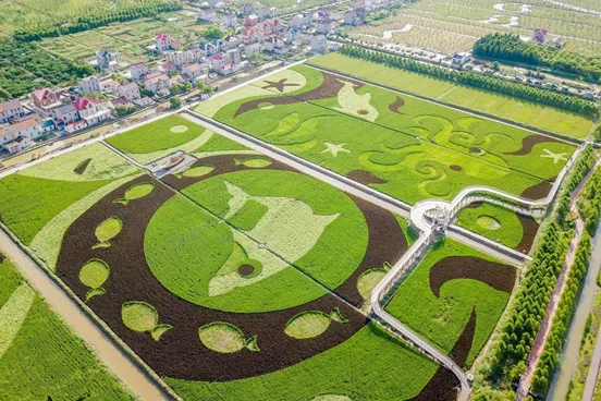 景区以海岛艺术田园水稻画、五彩花海为景区主要特色,整个园区占地320亩,2019年打造水稻画260亩,为大家呈现出6幅连环画,画中以国家一级保护动物“长江之子”小江豚为主人公;2020年结合花博会元素继续打造120亩的水稻画,同时根据季节特点,打造五彩花海,春季的五彩油菜花海、初夏的百日菊花海,让园区在一年四季呈现出不同的大地艺术风貌,整体展现了全新的农村风貌,打造了一个海岛网红新地标。