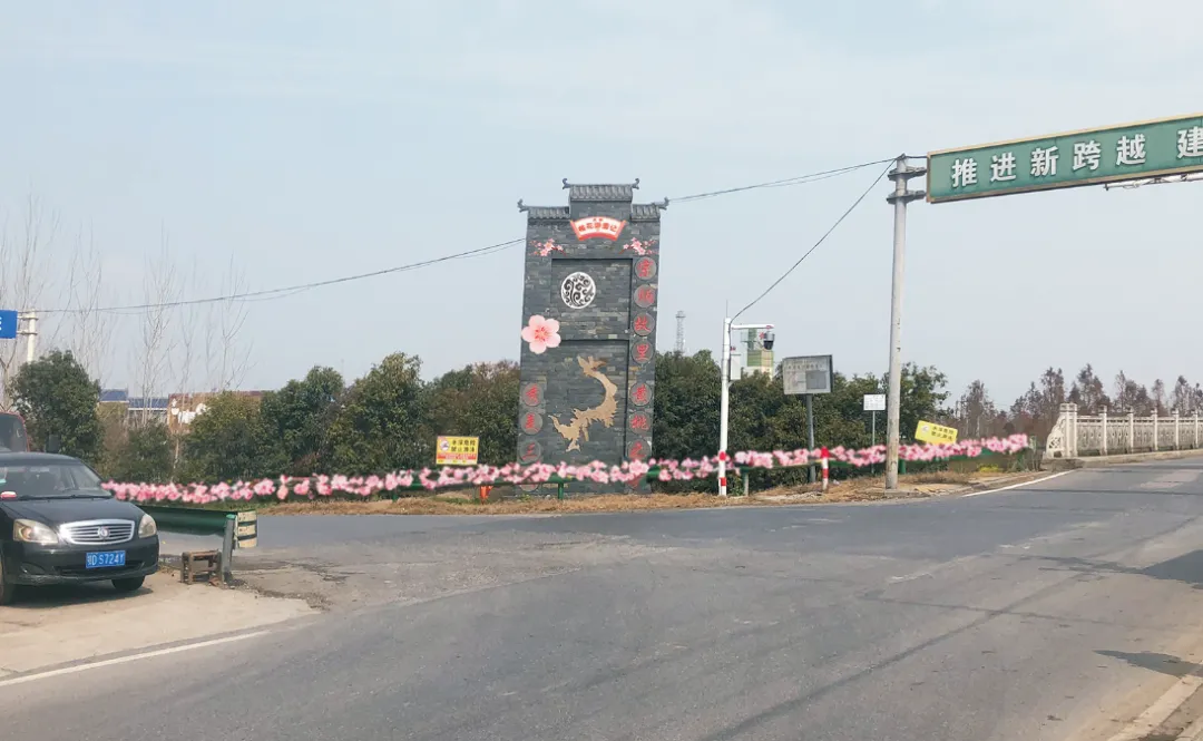 龚家垸社区设置打造了一条视觉联动的景观廊道。游览主干道两侧,印有秀美三湖、花开十里的红灯笼高高挂起,瞬间点燃游园氛围;道路两侧的绿化带、护栏处,简约纯色各类风车有序布置,与道路两旁盛放的桃花交相辉映。