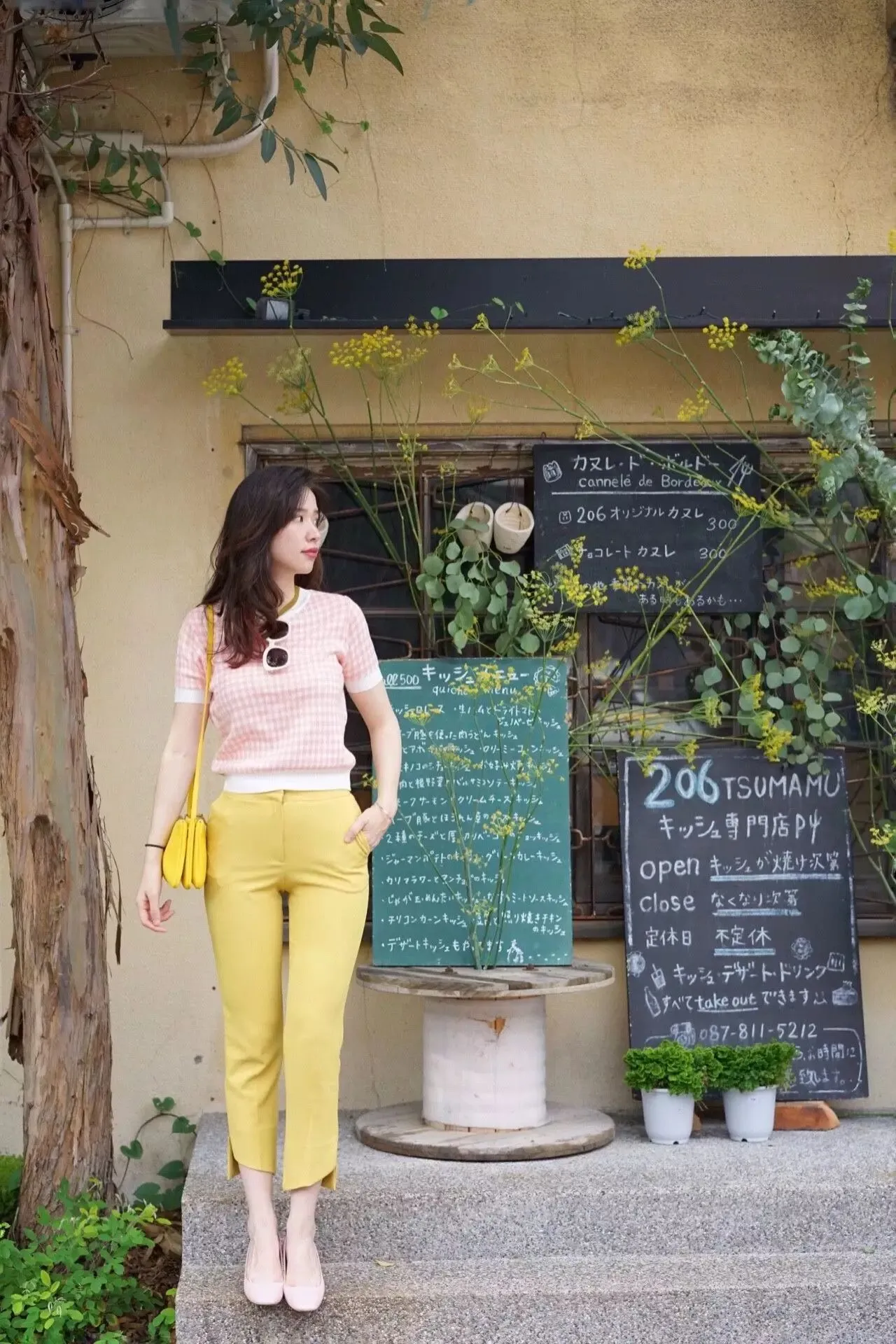 粉红+鹅黄的一天,那天机友大会的dresscode是格子,大家都穿了有格子的单品。回看照片,格子真的很适合日本啊。