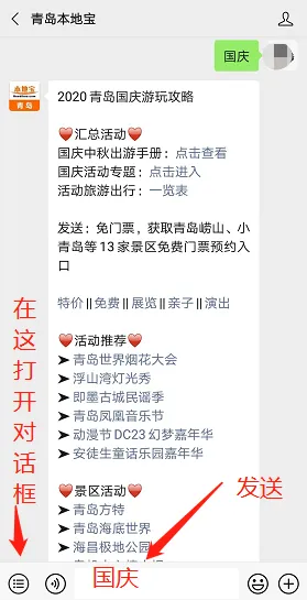 在【青岛本地宝】对话框发送:迎宾馆,即可获取预约入口