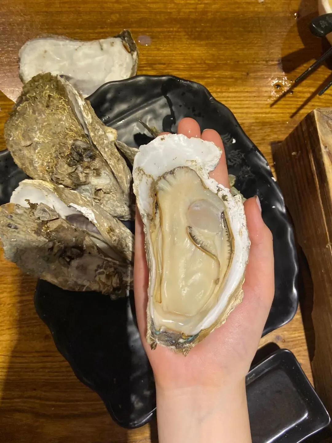 因为海岛还是属于广东省湛江市,湛江的生蚝绝对无法抗拒的美味,个头儿大,特别鲜美,没有一点腥味,吃起来嫩嫩滑滑像豆腐一样我俩回到长沙几天还在念叨那里的生蚝!