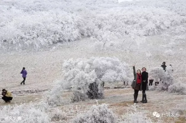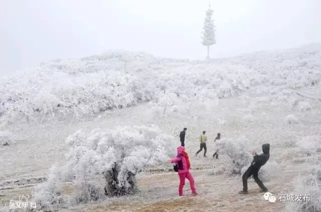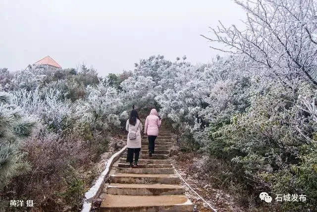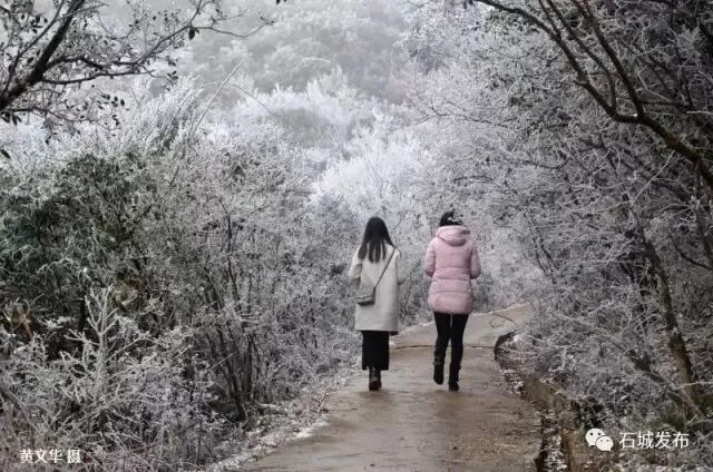 雾凇的出现,阳明山变得玲珑剔透,如童话世界,美不胜收,吸引了大批游客上山观赏美景。