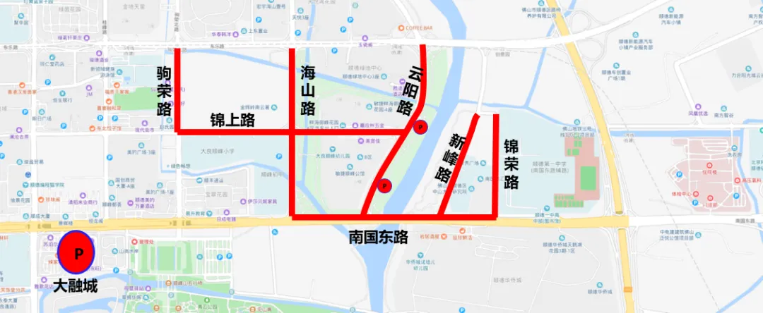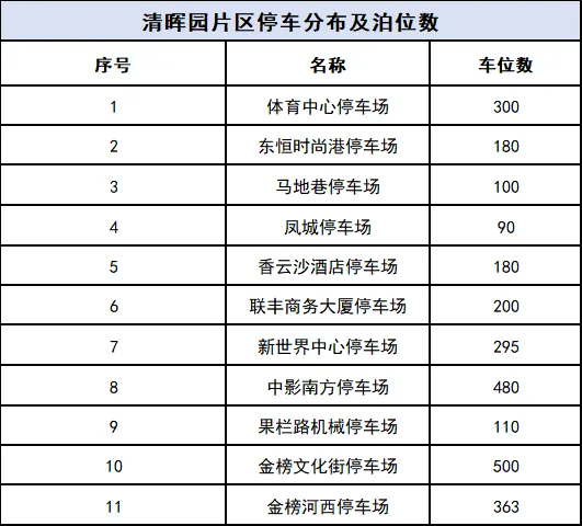 (1)五一假期期间,大良街道开放体育中心约300个停车位供小汽车游客临时停放车辆,清晖园周边有东恒时尚港、联丰商务大厦、中影南方等多个停车场开放,共约2800个车位。节假日期间,清晖路(凤山路-鉴海路段)禁止大巴车辆驶入,极端拥堵时段,交警部门将实施交通管制,同步限制小汽车进入。