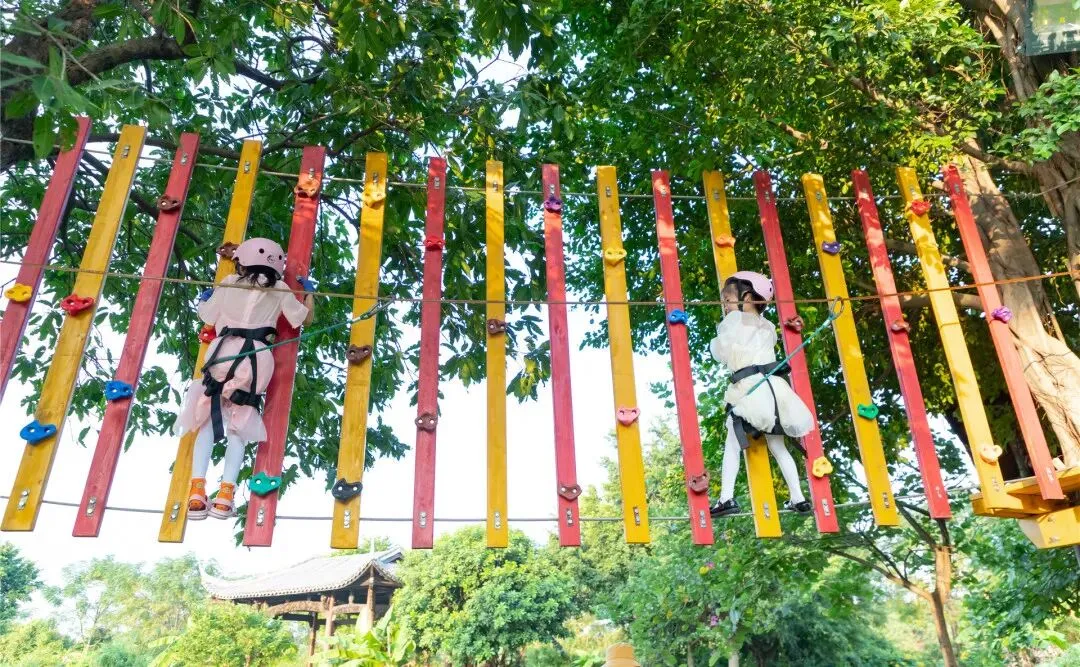 穿越丛林项目,麻涌就此一家!集冒险、运动、娱乐、挑战于一体。除了这个,萌爸客还能坐观光小火车游园、划龙舟、农耕体验、手工diy等等。