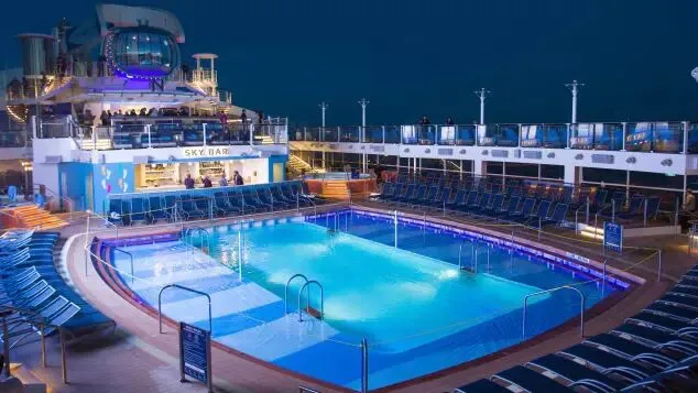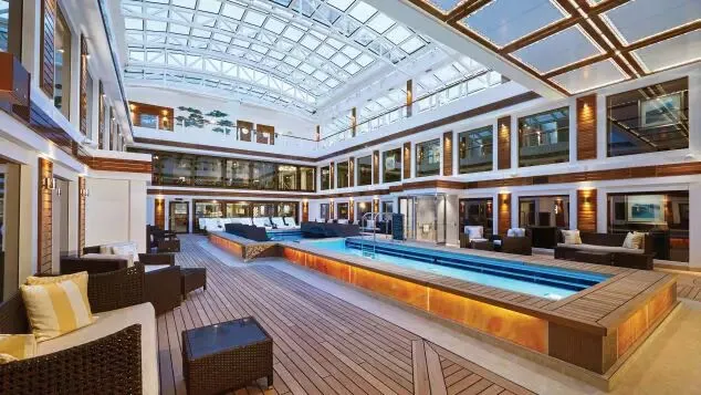 ▲量子号露天池边有可伸缩屋顶,无论下雨还是晴天都不怕 图据CNN