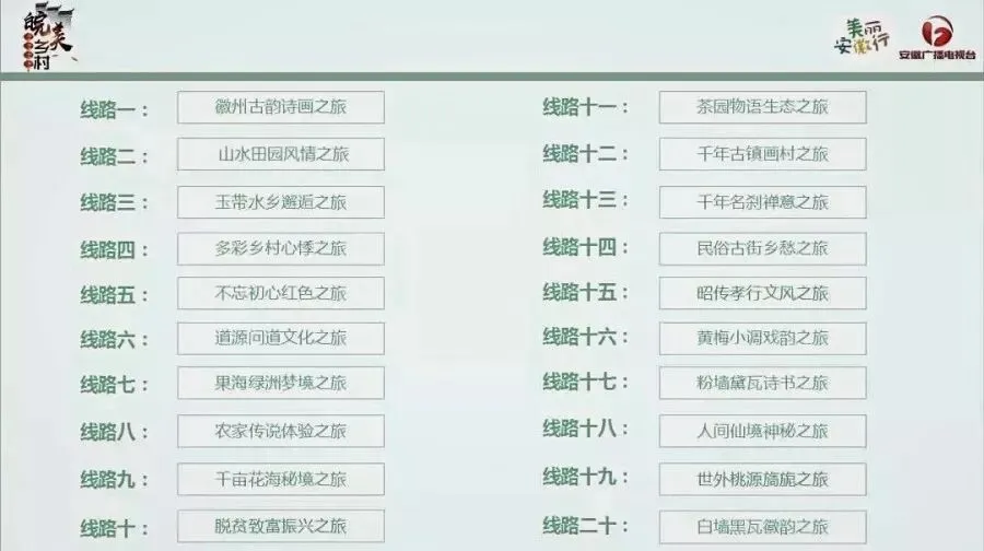 近日,安徽省旅游发展委员会主办了“皖美乡村”安徽旅游“百村”营销行动“百村拍摄”活动,评选出20条最美的安徽乡村旅游路线图,快来看看有没有你的家乡?
