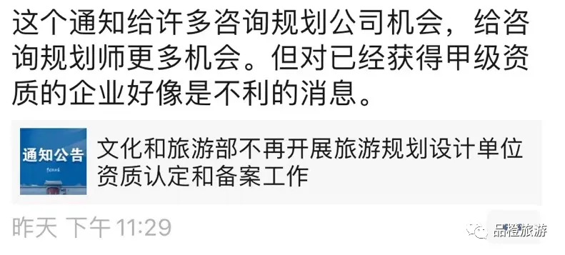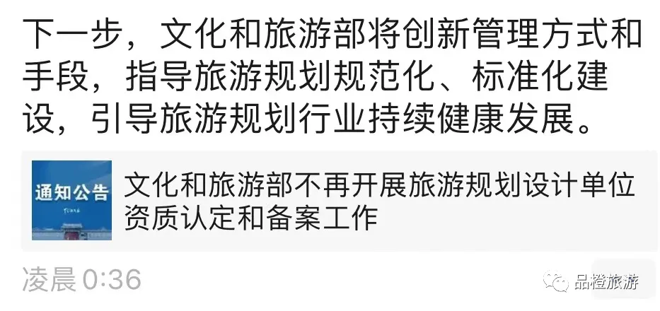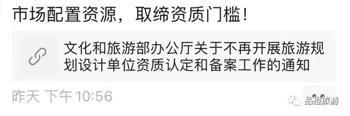 近日,文旅部官网一则《文化和旅游部办公厅关于不再开展旅游规划设计单位资质认定和备案工作的通知》正式上线。