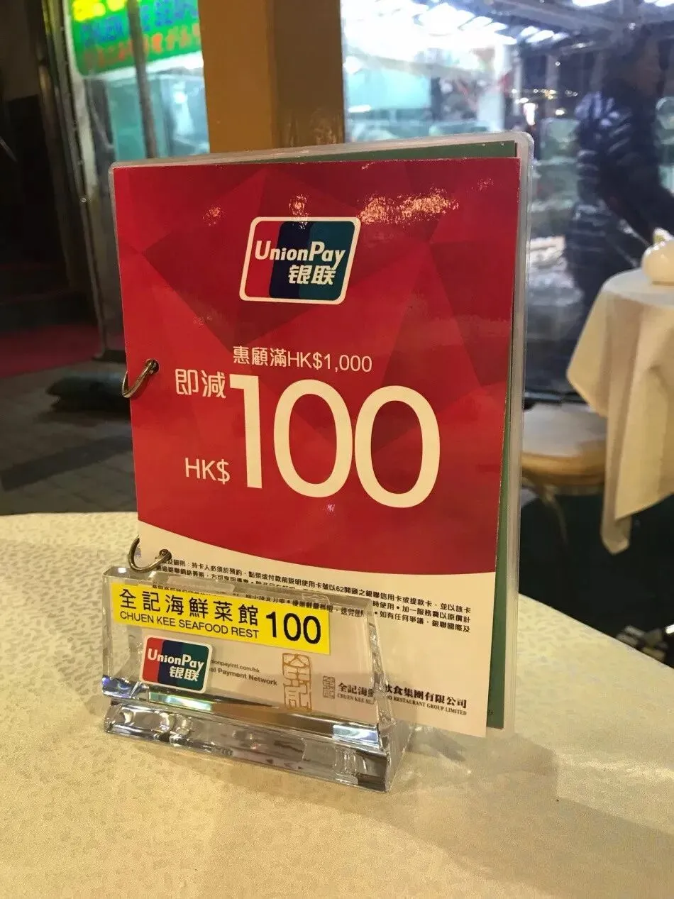 2.凭银联闪付卡拍卡或银连手机闪付单一消费净额满MOP$500即减MOP$20