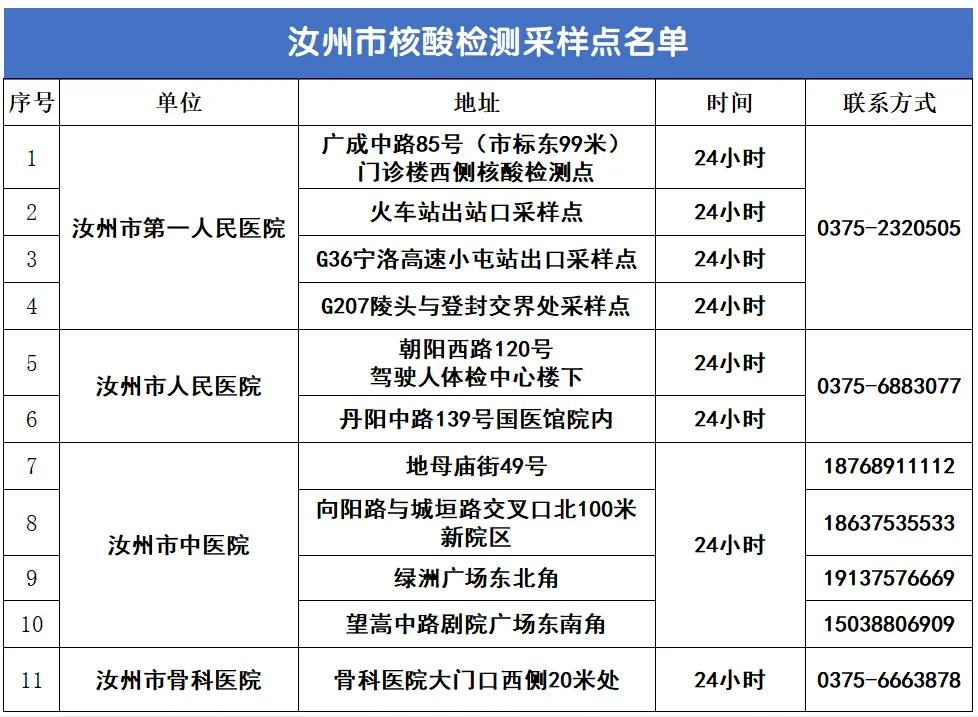 汝州32个核酸采样点,可以给离汝人员提供核酸采样服务。