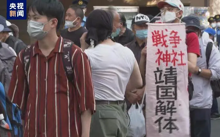 ▲据央视新闻消息,2022年8月15日,日本宣布无条件投降77周年之际,百余名日本民众在东京举行了示威游行活动,呼吁取消靖国神社。截图来自央视新闻视频