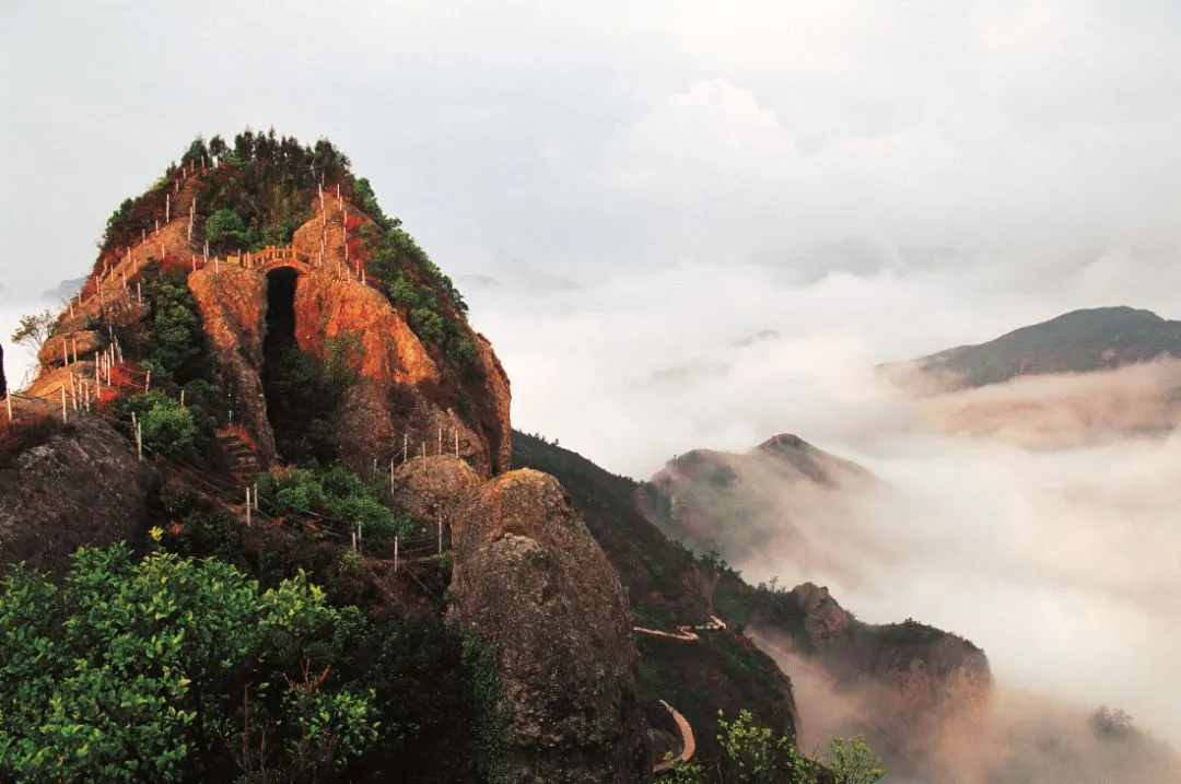 五月去楠溪江,绿水满盈,可以乘坐船只穿过一段峡谷,仿佛置身梦境,风景秀美,别有一番风味。石桅岩形似船桅而名。峰顶如并蒂莲蕾,比肩而耸,三面环溪,从高空俯视就像一个天然盆景。每当清晨云雾如潮,淹没群山,唯有它穿透云雾,直插云霄,雄伟异常。