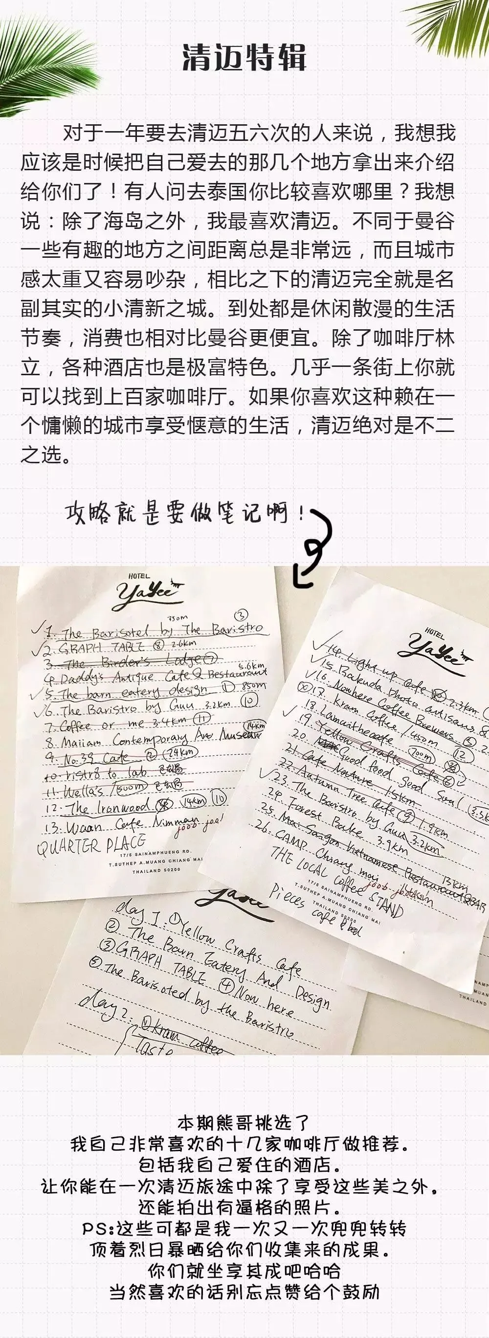 熊哥收集了这两年去过的清迈咖啡厅,餐厅,酒店,出游地,花费我几晚美容觉的时间给你们写了一个连书都找不到的真正的小清新城市合集!希望你们能用得上