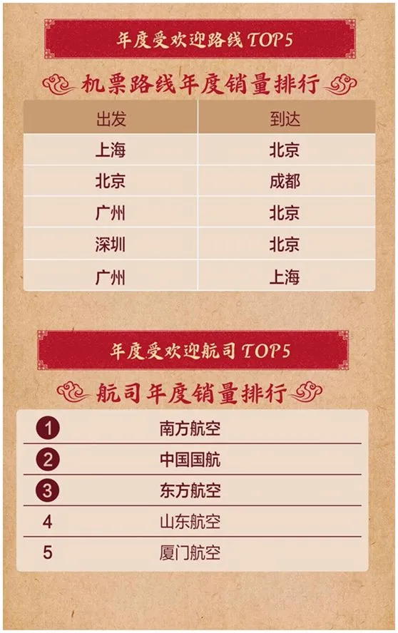 随着社会发展,中国经济在2018年迎来了崭新的起点。中国民用航空局官方数据显示,2018年民航预计将完成运输总周转量1217亿吨公里、旅客运输量6.15亿人次、货邮运输量750万吨,现在全国机场一天的周转量就已经超过了1978年全年。而京东生活旅行消费榜单显示,北京、上海、广州、深圳、成都五大城市继续领跑全国城市,包揽所有民航旅客年度受欢迎线路TOP5。同时,作为中国民航业力量的代表,南方航空与中国国航则继续蝉联年度较受消费者欢迎航司TOP2,东方航空、山东航空、厦门航空也紧随其后,逐渐成为中国民航业的中坚力量:乘机出行,就选中国民航TOP5。