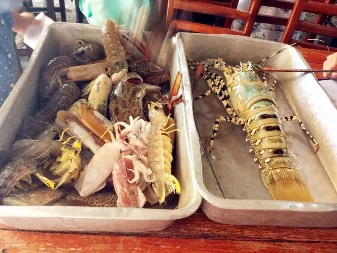 我们去了普吉岛挺出名的拉威海鲜市场,一条街两边,一边是卖海鲜,另一边就是加工海鲜的。这里的价格不算便宜,还遇到不少开价很贵的档位,记得一定要砍价!直接开价的砍掉三分之一!不要怕没人卖你海鲜,一条街都是!这个摊位谈不拢,就去别的。