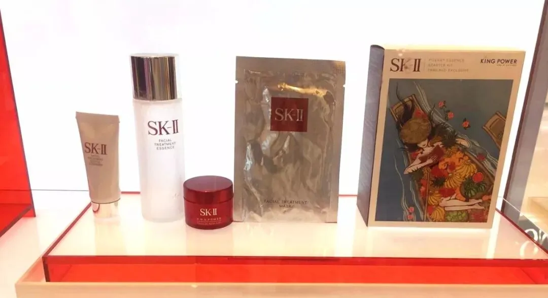 (↑↑图片SK-II 的泰国专供套装,75ml的神仙水+15ml大红瓶面霜+50ml洗面奶+一张前男友面膜,79美金,用了9折的券,折合人民币450元,后来用银联卡付款,还有折扣,最后410元到手,便宜到哭,飞机购物也有这套卖,但忍住呀,来免税店!)
