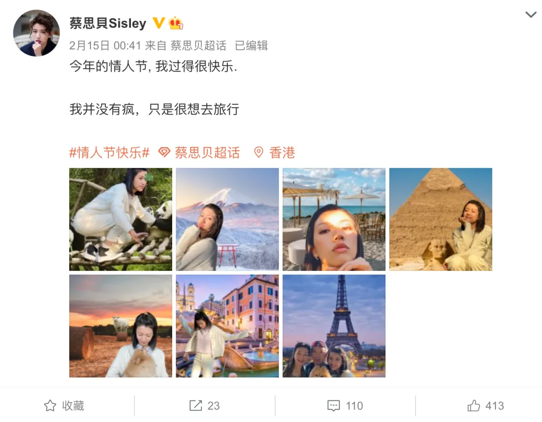 TVB艺人蔡思贝,晒出了环游世界的旅游照。 她一上来就告诉大家:我真的没疯。 就是……太想出门旅游了。