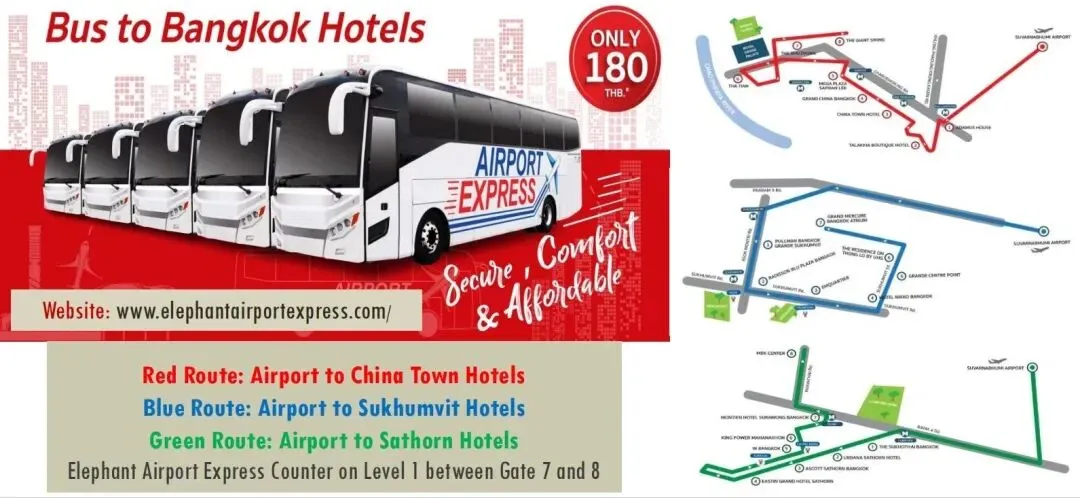 素万那普机场1楼7-8号门中间www.elephantairportexpress.com
