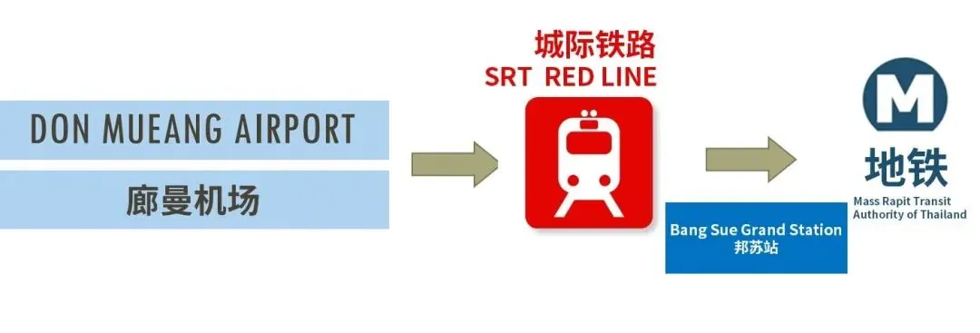 乘坐城际铁路SRT在Bangsue Grand站换乘MRT。