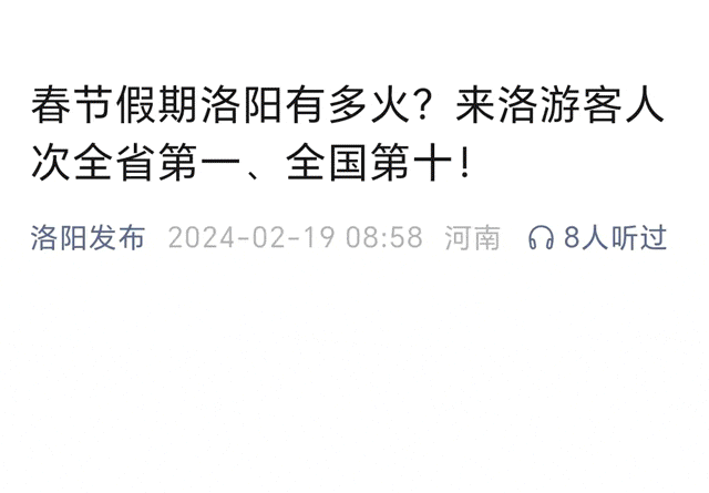 上榜清明小长假十大热门目的地;旅游订单量较去年增长约50%;AR虚拟与实景演艺融合的牡丹文化节开幕式更是火上热搜;还有那连开花都是爱你样子的荷包牡丹……洛阳的美正在以不同形式传播到世界各地,被更多人熟知!