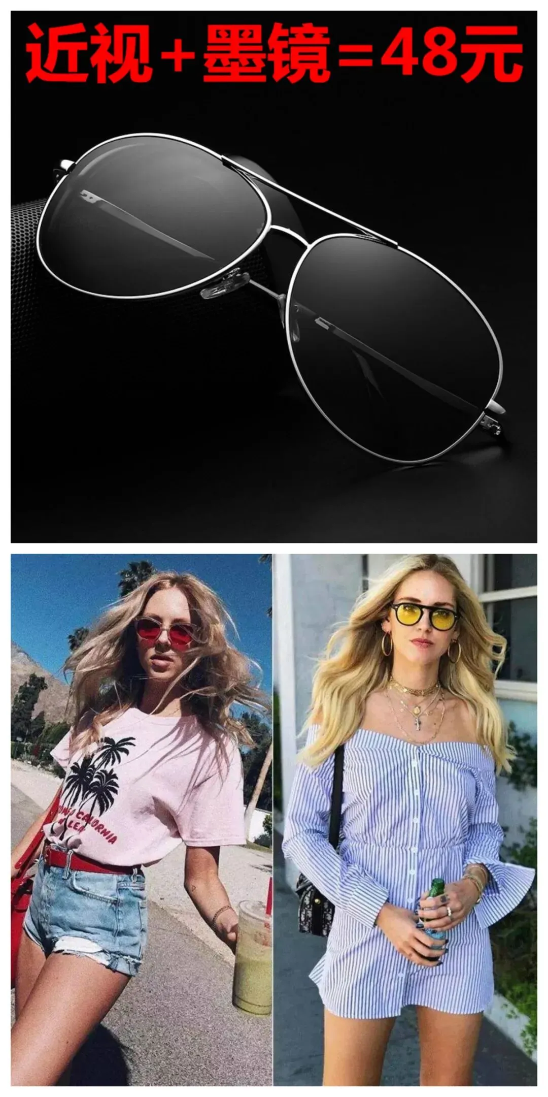 最后,这两年疯狂流行的这种平面型太阳镜,我也觉得很好看,很年轻,很休闲: