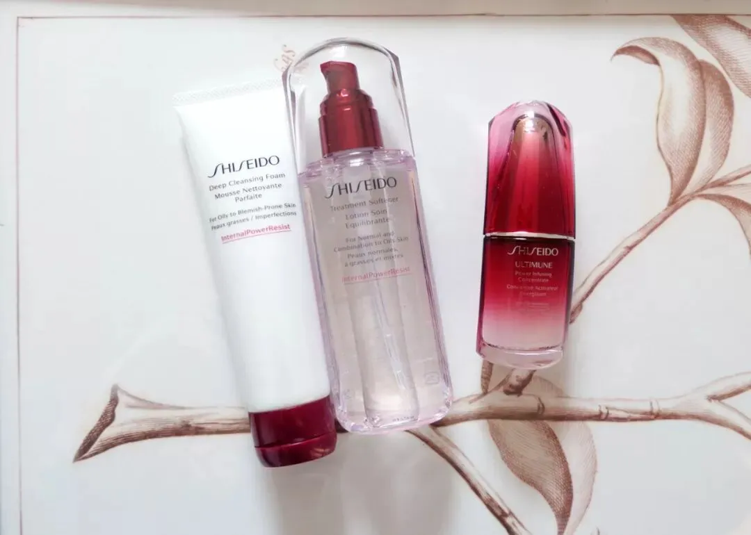 结果,上周末从热带小岛回来就刚好收到了资生堂寄来的三件套,分别是肌活系列洁面膏、肌源焕活精粹水和这个大名鼎鼎的资生堂红妍肌活精华露。