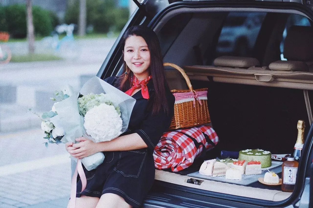 车的后备箱准备保温包,打包的蛋糕不怕融化,香槟也可以保证冰镇口感啦。鲜花、野餐布、起泡酒、竹编篮、后备箱、拉杆箱、几本书、最好有一只狗,这还不够仪式感吗?