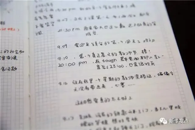 这是8月22日拍摄的陈莹丽日记本里的内容,上面写着“第一个真正意义的教师节,棒!”。新华社记者 张铖 摄