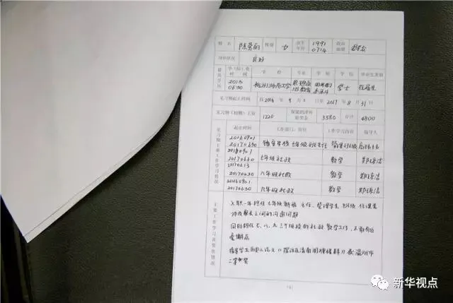 这是8月23日拍摄的陈莹丽的考核鉴定表。新华社记者 张铖 摄