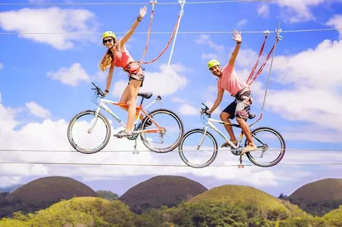 在巧克力山还有一些探险运动可以选择,比如,蹬着自行车飞跃一众小山包,你敢不敢呢?
