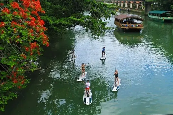 洛博克探险公园的名气来自于那里的丛林飞索体验项目,但这毕竟是勇敢者的游戏,不是所有人都有勇气尝试。洛博克探险公园依托于洛博克河(Loboc River),洛博克河是流经薄荷岛的唯一淡水河,两岸覆盖着茂密的植被,丛林深处有原始的热带风光和神秘的丛林动物,因此也会有人选择比较温和的乘船游览方式,同样能接触到洛博克河的自然风光。如果你觉得自己的平衡感还不错,还可以体验下很独特的站立式单板划水。
