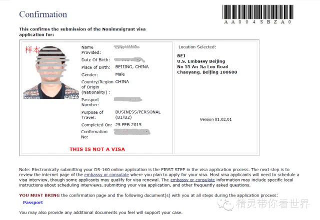 也可以通过DS160表上的条形码(即签证申请号)来登录
