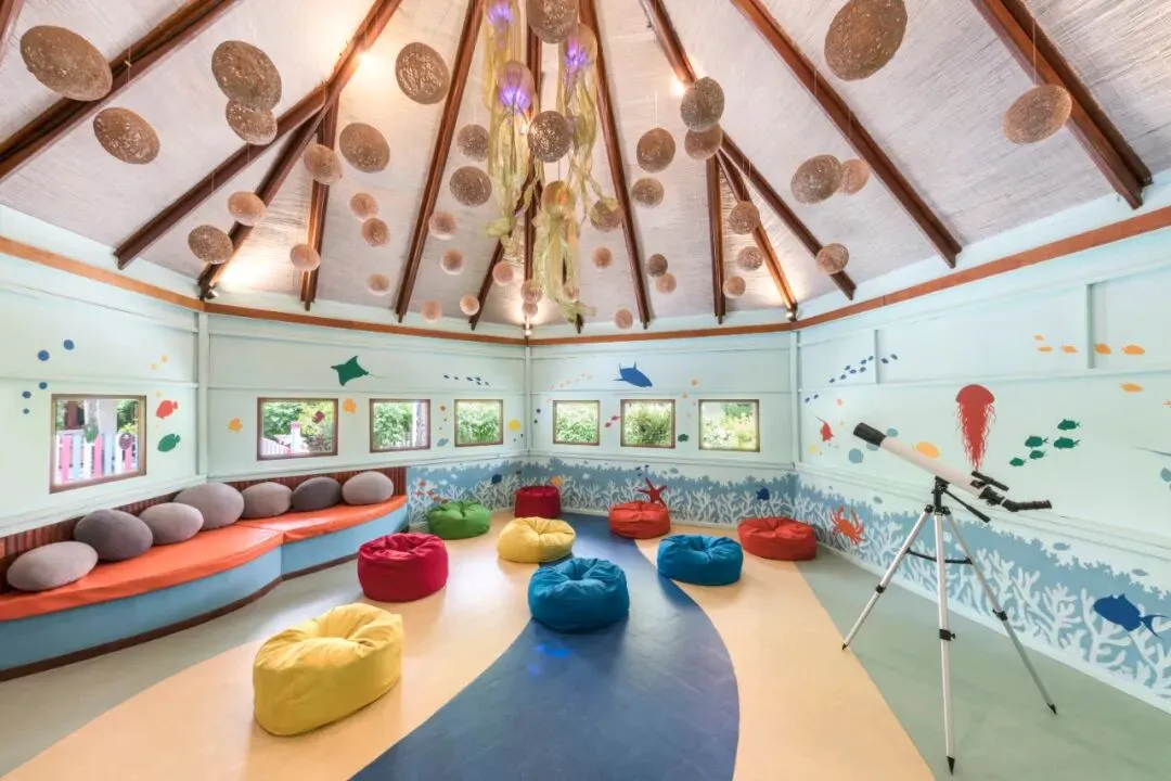 2:有人替你管娃 儿童俱乐部可谓是Club Med最吸引老父亲老母亲的一点了,这是我觉得Club Med里最最超值的一部分,一定要好好利用好好享受!儿童俱乐部可以选择把孩子半天或者全天托管,也可以不托管,只选择带着娃去参加俱乐部组织的活动。儿童俱乐部里都特别好,各种玩具和游乐设施,G.O也都很有爱心也很专业,堪比幼儿园老师。 其实儿童俱乐部在每个度假村都分几个年龄层,2-4岁是小小俱乐部(Petit Club),把孩子托管在里面是收费的(因为4岁以下孩子住酒店不花钱嘛),4-11岁是迷你俱乐部(Mini Club),12岁以上是青少年俱乐部(Junior Club),4岁以上的孩子无论是托管还是参加俱乐部的活动都是不花钱的。 你可千万不要觉得孩子去儿童俱乐部会很可怜,我看那些外国小孩都是蹦着跳着往里跑的,Luna两次都是在里面玩到拖都拖不走,嗨到爆! 孩子在俱乐部里不但有专业的G.O陪玩陪吃陪睡,还锻炼了胆识和社交能力,和来自各个国家的小朋友一起交流,真的也是很难得的机会。 3: 热情专业的G.O G.O是Club Med的专有工种,英文叫Gentle Organizer(亲善的假期组织者)。他们可不仅仅是普通的酒店员工而已,这些人来自各个国家,会说多国语言,而且各个身怀绝技,什么唱歌跳舞,打拳射箭,带娃哄娃,简直是无所不能。