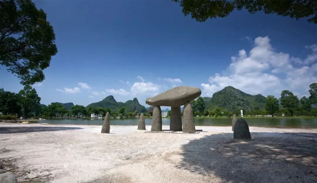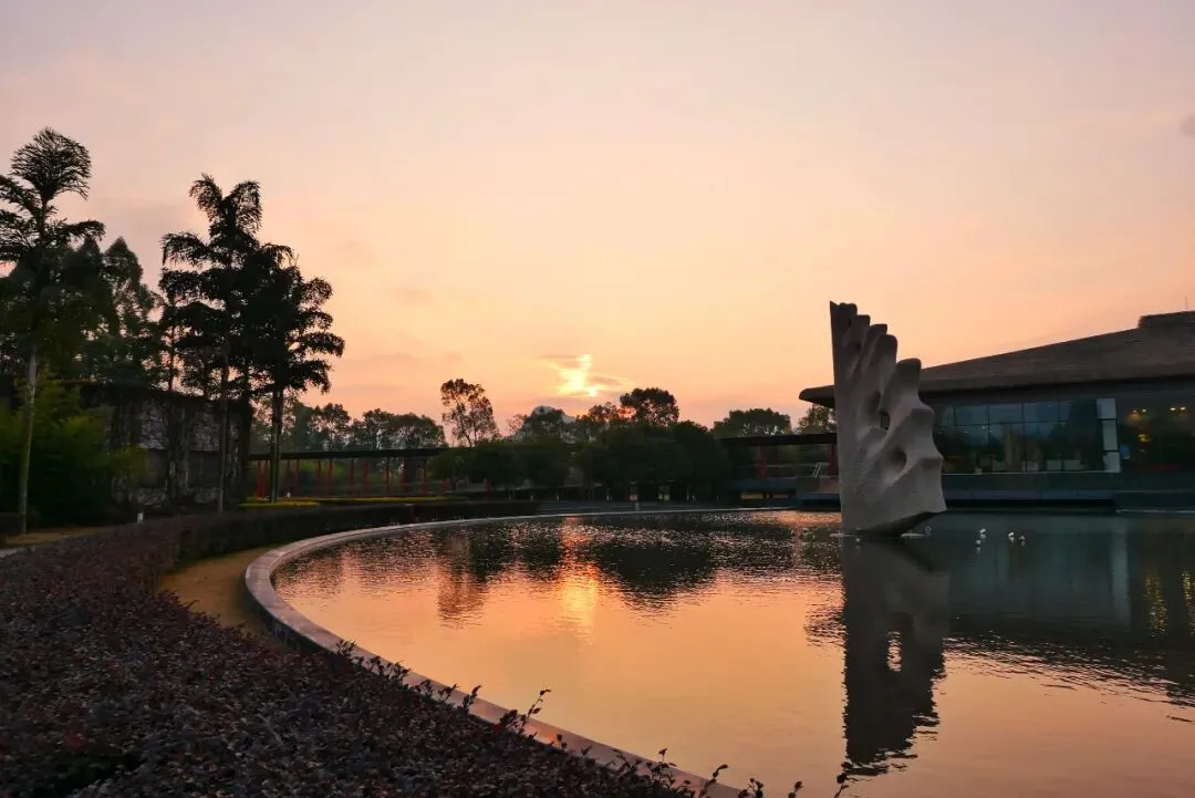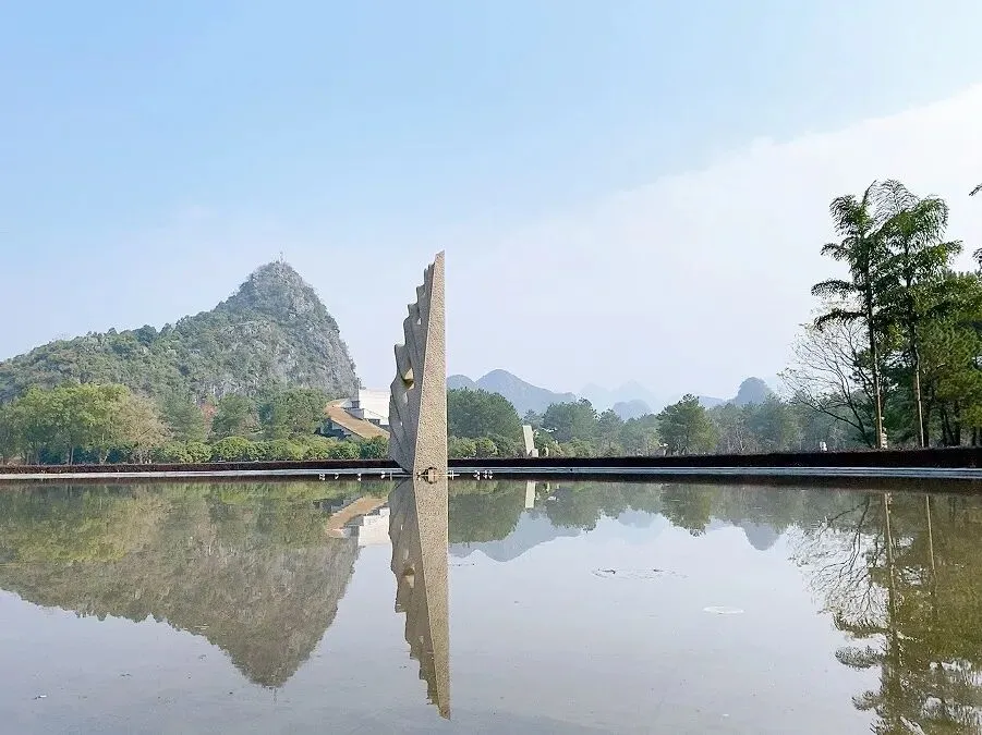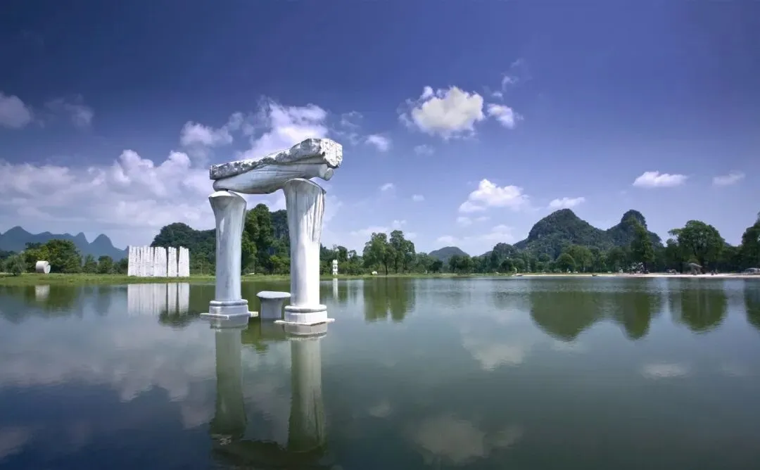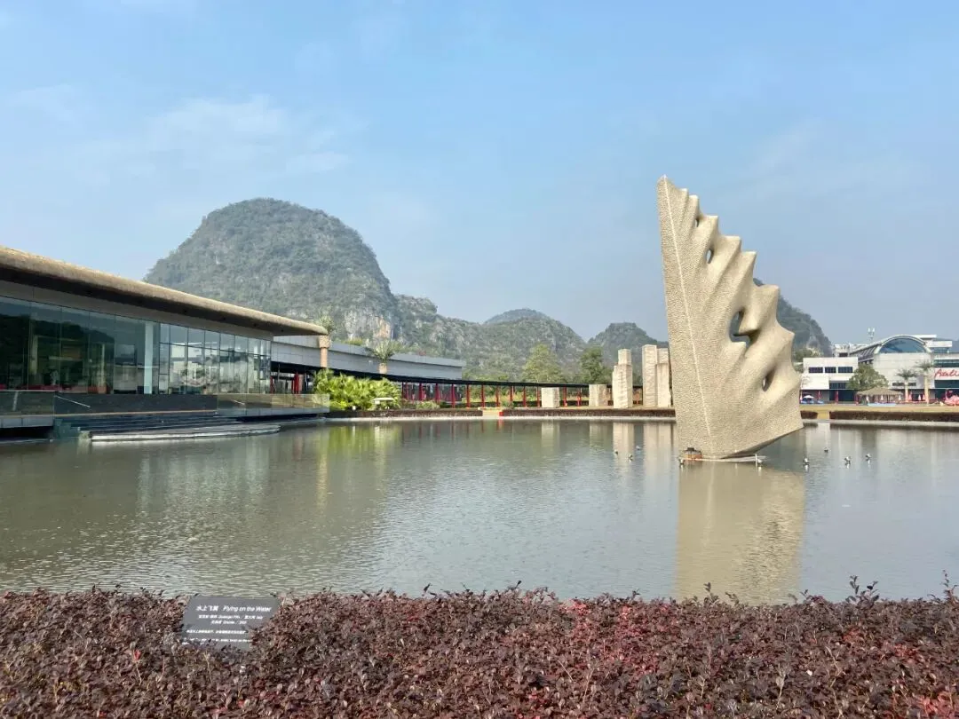 桂林Club Med的前身是桂林的愚自乐园,由极度热爱艺术的台湾企业家创建,所以整个村内散布着一百多处雕塑和艺术品,不乏世界顶级艺术家的作品。 从前台往外看,最先注意到的是巨大的翅膀「水上飞翼」,白天和晚上看都很漂亮。