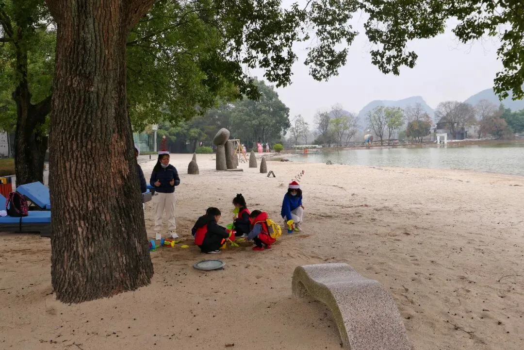 湖边有人造的沙滩,酒店有挖沙玩具,所有小孩都是挖沙子停不下来!