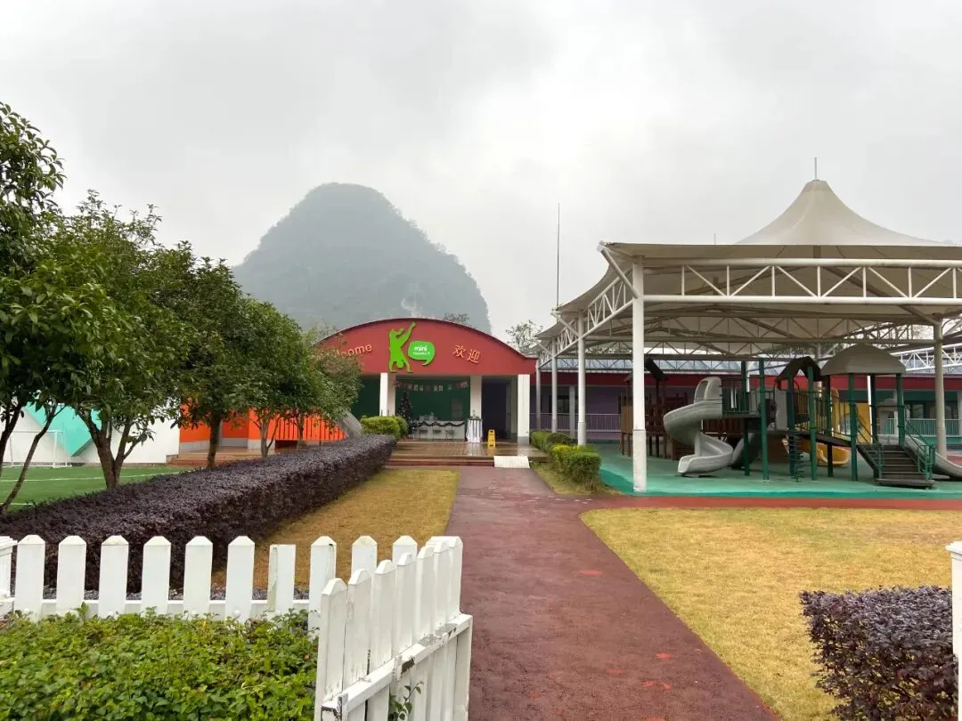 之前去阿那亚、延庆的Club Med儿童俱乐部都是建在室内的,而桂林的儿童俱乐部是一座带院子的独栋建筑,是想象中风景绝佳的森林幼儿园的样子。