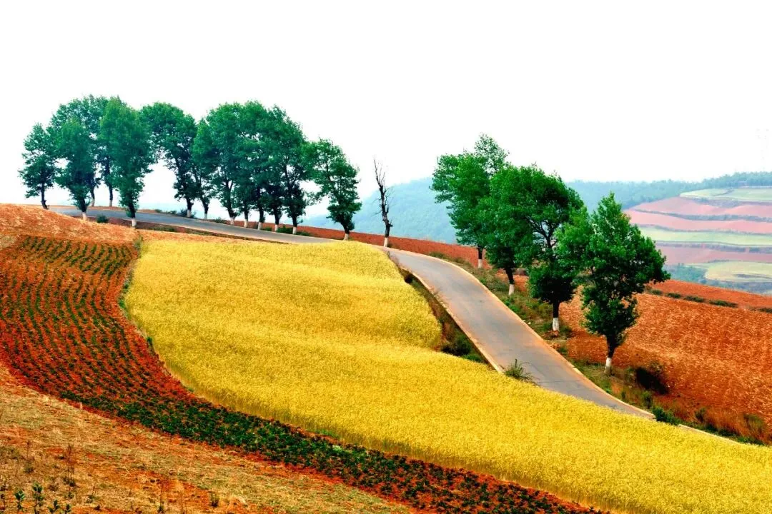 东川红土地每个季节都有不一样的颜色 到了9月 这方土地点缀着各种成熟的作物 红色的土地,金黄色的荞麦 白色的冬油菜花,绿色的洋芋苗 五彩斑斓,绚丽无比 秋日东川红土地的日出日落 也千万不能错过