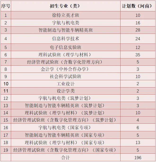 2021年北京理工大学在豫招生普通一批计划总量相较去年增加5个,分专业招生计划如下表,本表仅供参考,请以当地公布的计划为准。