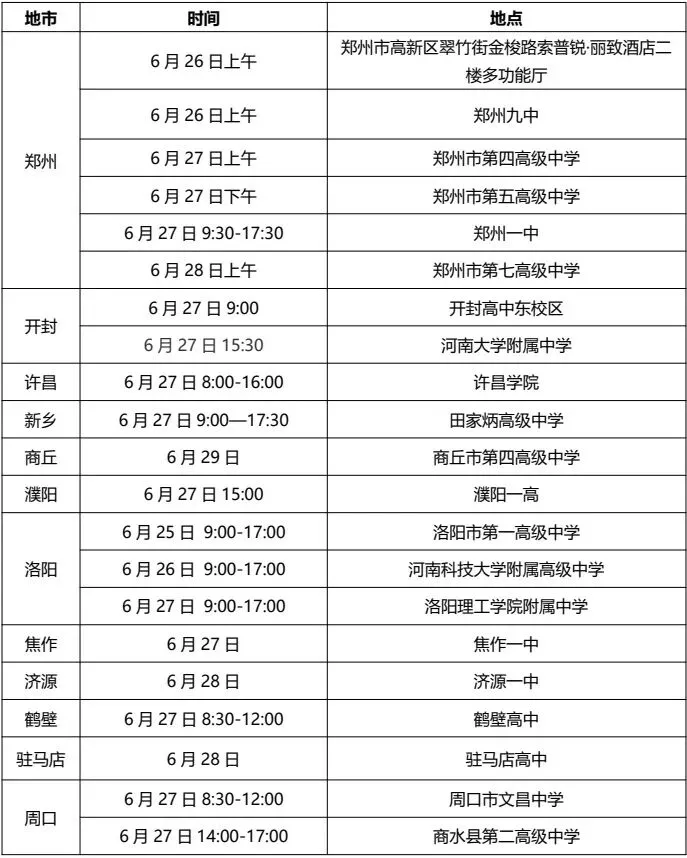 行程安排 | 北理工河南各地区招生咨询会、联系方式一览