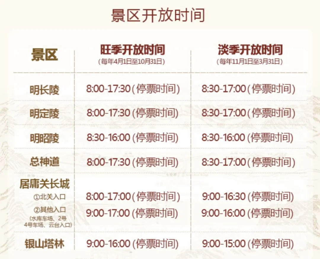 现场开始售票及入园时间:6:30(其中7月1日-8月31日开始售票及入园时间:6:00)