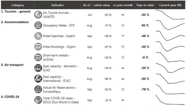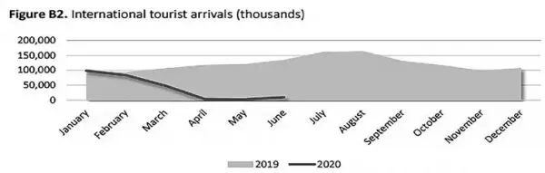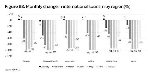 图 1 全球旅游业受 COVID-19 疫情影响的总体情况(数据来源:UNWTO)