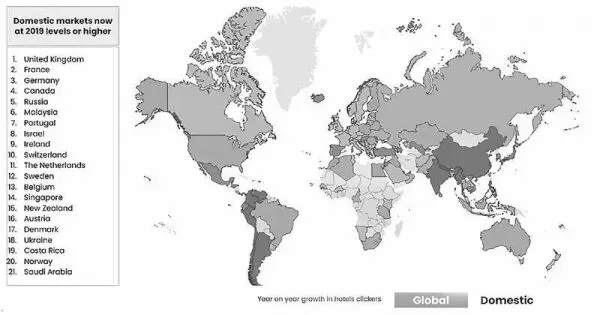 图 6 Tripadvisor 网站国内酒店周订单量同比增长的 20 个国家 2. 产业创新动能正在积聚 旅游业仍是最具投资价值的优选领域。2020年中国服贸会特别设立的旅游投融资大会上, 签约总额达到157.1亿元人民币。美国探险邮轮Lindblad公司已通过优先可转股的形式,获 得了 8500万美元的融资。欧洲风投机构Howzat Partners最近计划融资1.2亿美元(1亿欧元) 用于投资更多旅游和数字化创业公司。目的地旅游电商KKday完成7500万美元C轮融资, 其中,领投方Cool Japan Fund(CJF)主要由日本政府出资,致力于促进日本产品和服务的需求及发展。旅游和金融科技初创公司Fly Now Pay Later获得了 3920万欧元A轮股权和债务 融资。全球跨境支付平台Airwallex (空中云汇)完成D+轮融资,引入阿里巴巴创业者基金作为新投资方。英特尔斥资9亿美元收购以色列交通出行应用Moovit,该应用将旅程规划和公 交线路、出行提示等功能结合为一体,目前已将其自动驾驶技术部署在接近6000万辆汽车上。 科技发展丰富和创新旅游体验方式。亚马逊上线了虚拟旅游体验服务Amazon Explore, 采取直播的形式让用户通过视频互动学习和探索新鲜的地方,部分项目也支持直接购物功能, 体验项目包括墨西哥城游走观光、布拉格老城区漫步、个性化商店导购、日本寿司制作教程等。Klook正与泰国旅游局合作开展“泰国安全与健康标识认证(SHA) ”项目,为旅游业的重启 做好准备,并提升游客疫后赴泰国旅游的安全感。德国国家旅游局与百度知道率先启动了复苏 计划,百度知道推出“知行计划”,以“云游德国全知道”为主题,数字化推广为手段,展开 —系列合作,携手打造多元问答互动生态。谷歌正与连锁酒店合作,将Nest Hub智能显示屏 和谷歌助手引入酒店客房。 特色文化催化旅游业态创新。随着各国对本国特色文化的深入挖掘,文化和旅游呈现出良 好的融合态势,催生诸多旅游产业形态。2019年,巴黎英雄联盟S9全球总决赛,电子竞技现 场观战的观众约有5万人,人气与世界足球杯赛场的人气相当。2019年,德国国家旅游局与 包豪斯大学联合会,推出度主题“百年包豪斯”,通过虚拟技术打造出魏玛包豪斯学院里的房 间,让互联网访客身临其境,从文化旅游角度向经典致敬。澳大利亚为了让外来游客深度体验 本地独特历史文化,推出“城市徒步游”,如“弗里曼特尔2小时徒步游”可以让游客参观澳 大利亚殖民时期的监狱和当地著名的佛里曼特尔集市。 市场主体积极探索转型升级。随着疫情防控逐渐常态化,许多旅游从业者开始想方设法“突 围”,探索行业转型升级的路径。在中国旅游社交分享网站“马蜂窝”上,最近,“欧来欧去” 华人旅行团的号在直播频道活跃起来,每一期直播都选择欧洲某一处旅游胜地通过“云旅游”欣赏异国美景,了解当地文化风俗,如“跟着达芬奇密码解读巴黎”“徒步布达佩斯第一大道 小香街”“英国的小罗马——温泉圣地巴斯”等。瑞士酒店纷纷推出特价房,酒店的房价甚至 比疫情之前便宜了 70%左右。欧洲各国的居民也开始自救,很多商家开始“户外大排档”模 式的就餐方式。日本航空公司计划利用国际航线的客机,推出从成田机场起降的游览飞行服务, 乘坐飞机观赏夕阳余晖、眺望璀璨星空,并可以品尝夏威夷航线的机内套餐。法国当地旅游公 司相继开设多节茶文化、非遗文化等。 直播课程,吸引喜爱传统文化的“看客”,并与法国旅游 业协会共同举办“360文化空间”的导游培训线上课程。 3. 政策支持的效应正在显现 城市与旅游融合发展的模式正在凸显。为了优化游客的旅行体验,提升游客在本国出游得 到的满足感,各国在旅游业相关服务与设施上做出长期规划。北京城市总体规划显示,北京市 将成为生活更方便、更舒心、更美好的和谐宜居城市,成为天蓝、水清、森林环绕的生态城市, 也将成为彰显文化自信的国际交往中心城市。大伦敦发展的最新目标,2036年伦敦将会成为 “超越全球城市的存在一增加市民和企业的发展机会,优美的环境以及舒适的生活,成为应对 21世纪各种问题,尤其是气候变化的世界先行城市”。2019年6月6日,德国联邦内阁通过 了德国环保部部长舒尔策提出的《城市自然系统整体规划》,其目标是保护城市中的物种和生 物多样性,削弱气候变化的负面影响并最终提高人类的生活质量。联邦政府将支持市政当局将 自然和绿色空间融入城市景观。联邦政府希望在城市公园、体育设施、公墓、私人庭院、城市 森林、小溪和河流,以及城市中心周围的建筑和建筑上,建设更多的自然景观。 道路交通等基础设施的支撑条件正在稳固。世界上主要旅游国家立足于本国旅游业的高质 量发展,大力推进本国道路交通设施优化升级,以便游客出行。中国中长期铁路网规划计划到 2025年,铁路网规模达到17.5万公里左右,其中高速铁路3.8万公里左右,到2030年,基 本实现内外互联互通、区际多路畅通、省会高铁连通、地市快速通达、县域基本覆盖。德国交 通发展规划文件(2030 )计划用2696亿欧元建设一个可持续发展的交通网络,支持交通基础 设施建设领域的1000个紧急优先项目。部分旅游国家立足于本国现实,优先发展海运与航空 运输。英国发布“海事战略2050″,将在15-30年内实现无人航行系统、AI、机器人以及传 感器等技术在航运业的运用,并在国际无人船监管框架的制定方面