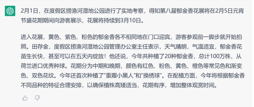 以上给到ChatGPT的信息都很有限,那如果给它提供更多的信息,它能够生成一篇完整的报道吗?