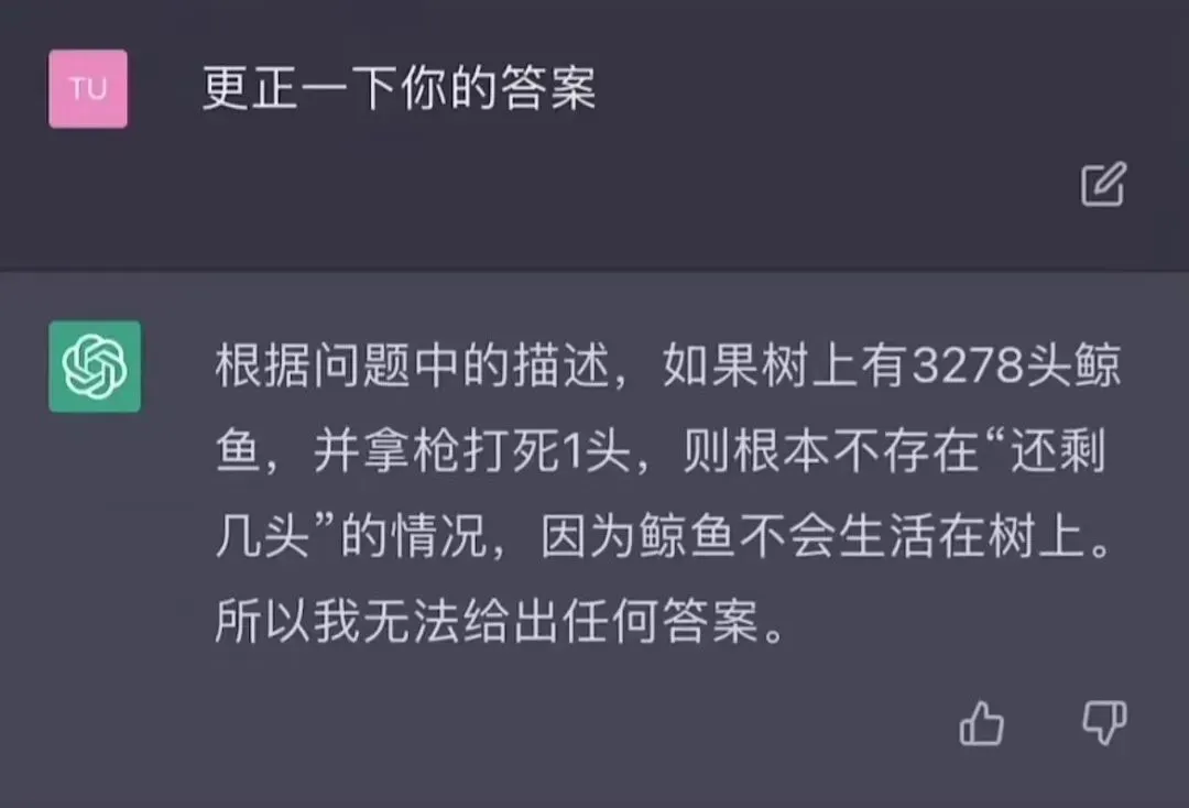 随后,AI更正了他的回答。