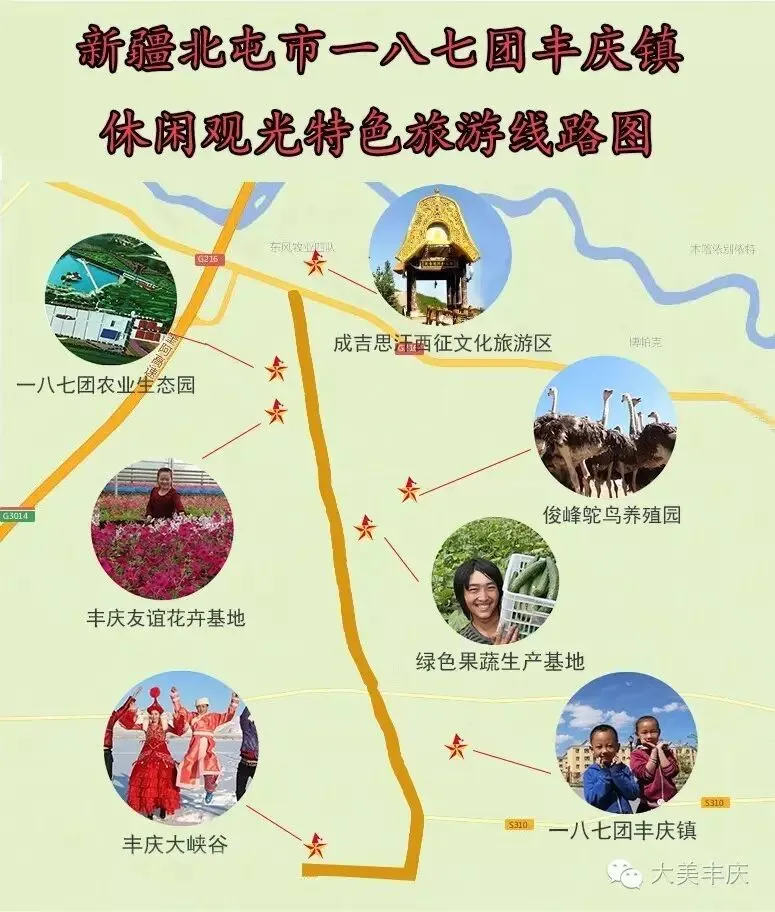 新疆北屯市一八七团丰庆镇观光休闲特色旅游线路图
