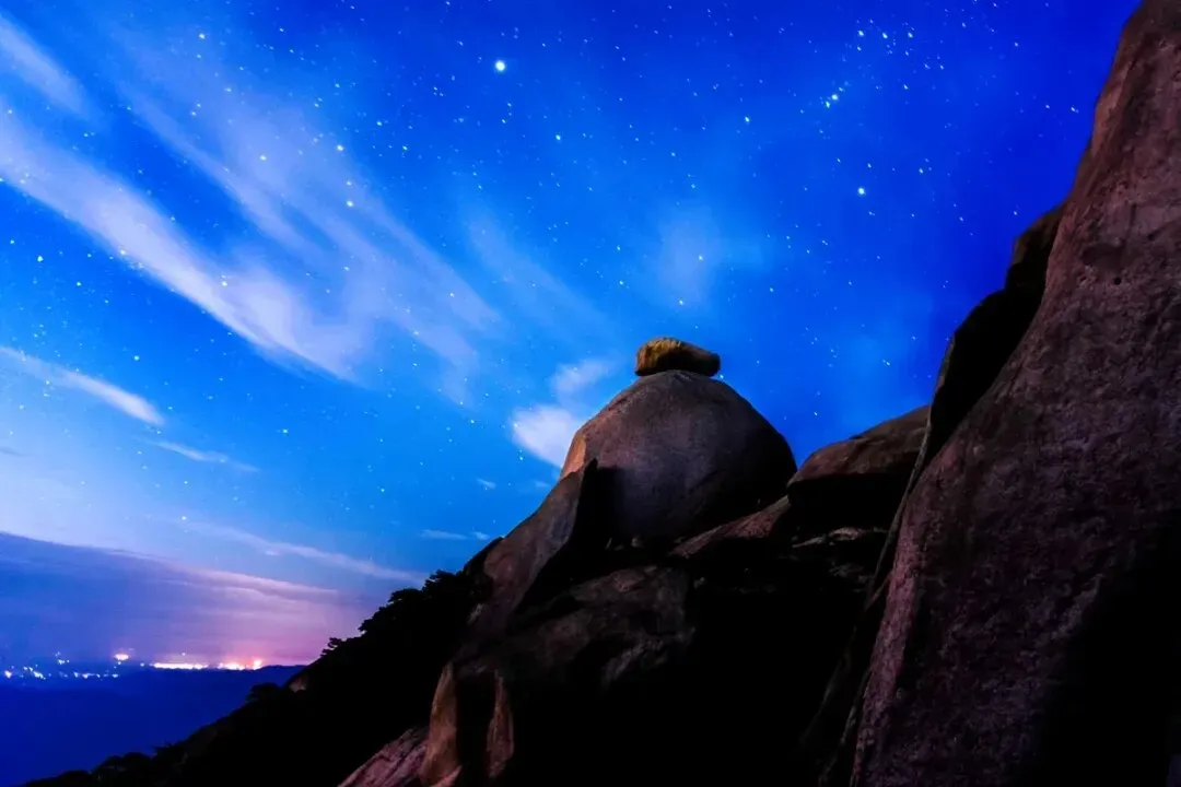 飞来峰在“龙吟虎啸崖”的最西端,一峰独立入云,峰顶巨石如盖,浑身石骨,浅浅的水痕遍布全身,这就是天柱山第三高峰。