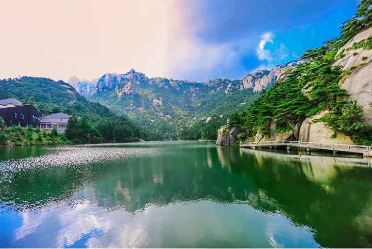 炼丹湖湖水清澈、四周群峰环绕,苍崖青松倒映其中,如锦如织,置身其中,微风徐来,心旷神怡,瞬间忘却烦恼~