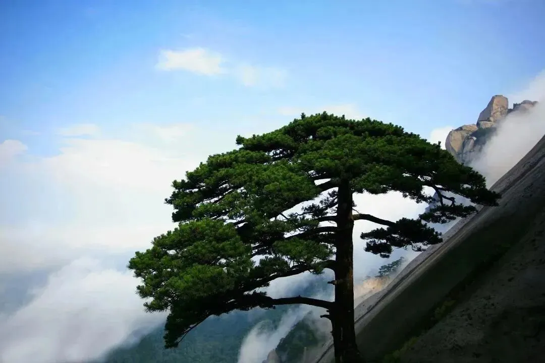 天柱松是天柱山的主要组成部分。天柱峰侧有一棵老松,虽树龄已逾千年,依然风姿绰约,盎然生机。巍巍天柱松屹立石壁,笑迎八方。