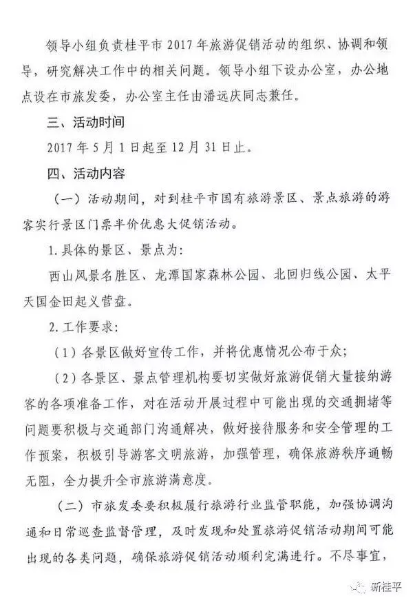 桂平市开展2017年旅游促销活动方案:2017年5月1日至12月31日,桂平国有旅游景区景点门票半价
