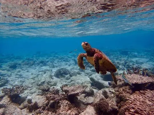 ▲马尔代夫,潜水偶遇的一只海龟。
