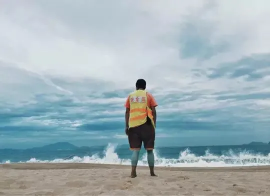 ▲深圳大梅沙,台风将至,所有人在安全线以内,只有管理员毅然面对着海水。